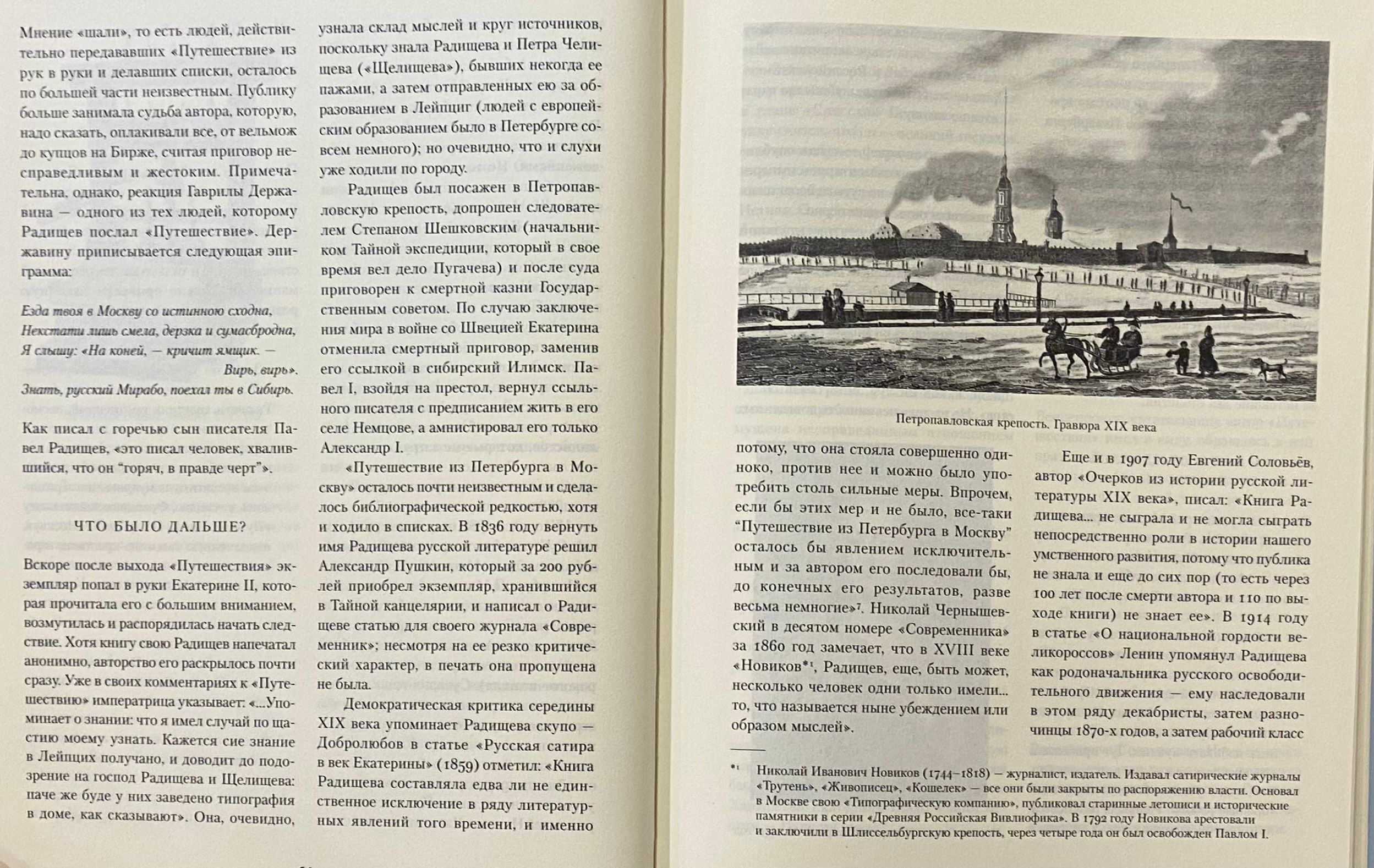 Первое русское публицистическое произведение — книга крупного чиновника, который проехал 600 верст и стал диссидентом. Каталог российского бесправия и укор высшей власти, за который Радищев отправился в Сибирь.