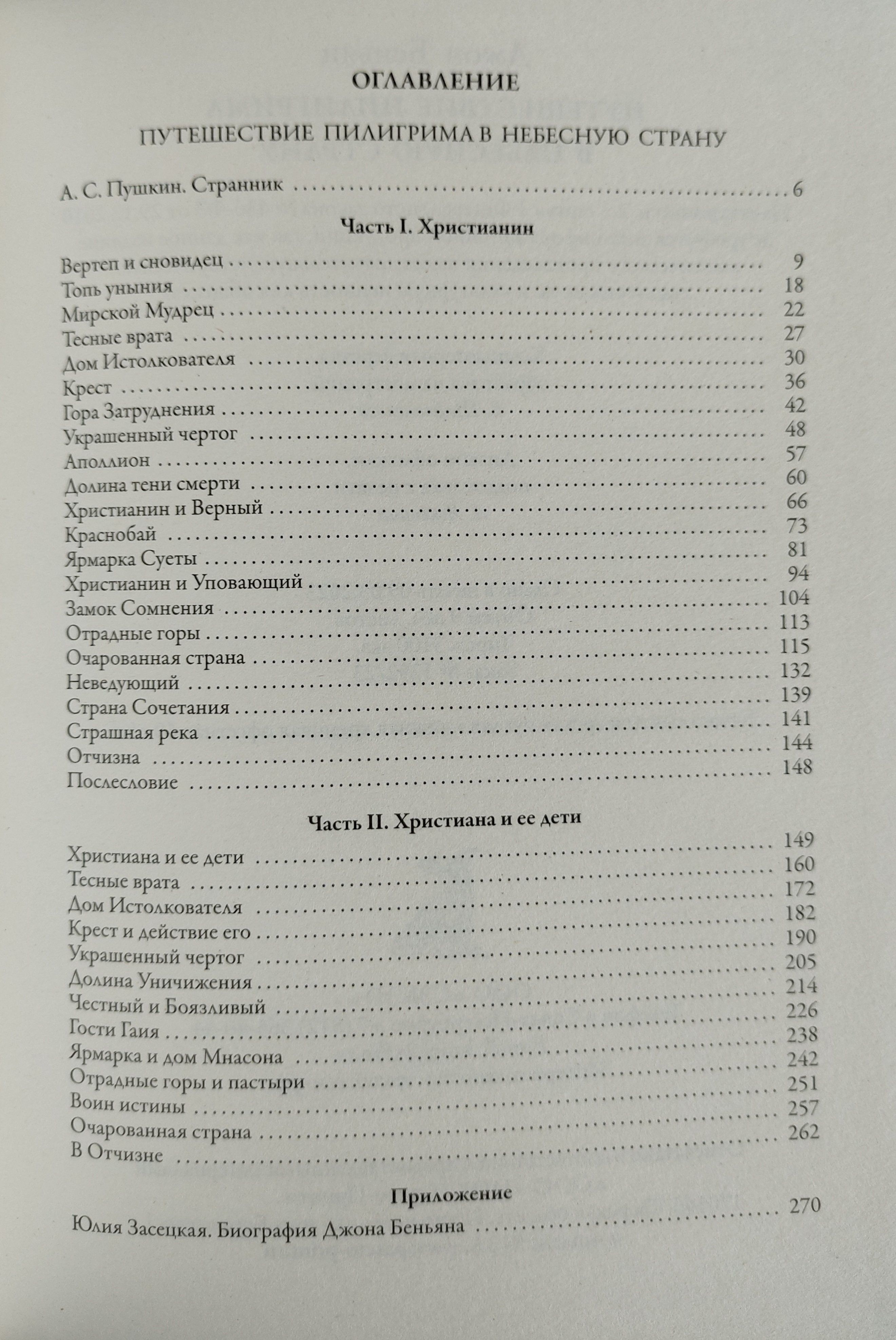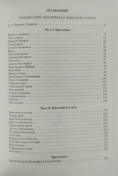 Джон Беньян (1628–1688) — классик английской религиозной литературы, протестантский проповедник, ныне почитаемый церквями Англиканского сообщества, автор около шестидесяти произведений, многие из которых являются расширенными проповедями. Самое известное его произведение — большой роман-аллегория о поиске человеком Бога «Путь пилигрима из этого мира в грядущий» («The Pilgrim’s Progress from This World to That Which Is to Come»), на русском языке традиционно именуемый «Путешествие Пилигрима в Небесную Страну». Роман был впервые опубликован в 1678 году (первая часть) и в 1688 году (вторая часть); уже при жизни автора первая часть выдержала одиннадцать переизданий общим тиражом более ста тысяч экземпляров. С тех пор популярность романа не ослабевала: это одна из самых широко известных аллегорий, когда-либо написанных; текст переведен на многие языки, протестантские миссионеры часто переводили эту книгу как вторую после Библии. Роман Беньяна оказал заметное влияние на развитие не только религиозной, но и светской литературы; отсылки к нему можно обнаружить в произведениях Чарльза Диккенса, Уильяма Теккерея, Марка Твена, Луизы Мэй Олкотт, Александра Сергеевича Пушкина, Николая Семеновича Лескова и многих других авторов. Первый перевод «Путешествия Пилигрима» на русский язык появился в печати в 1878 году в издательстве Н. И. Новикова; впрочем, он был сильно урезан и к тому же выполнен не с английского оригинала, а с немецкого перевода. В 1835 году А. С. Пушкин создал стихотворение «Странник», представляющее собой рифмованное изложение первой главы романа; с тех пор это стихотворение традиционно используется перед основным текстом в русских изданиях аллегории. В данной книге роман публикуется в переводе Ю. Д. З. — это псевдоним Юлии Денисовны Засецкой (1835–1882), известной русской протестантки, дочери героя Отечественной войны 1812 года Дениса Давыдова. Это первый полный перевод аллегории Беньяна на русский язык, выполненный с большой тщательностью и вниманием к тексту оригинала, к тому же снабженный жизнеописанием автора.
