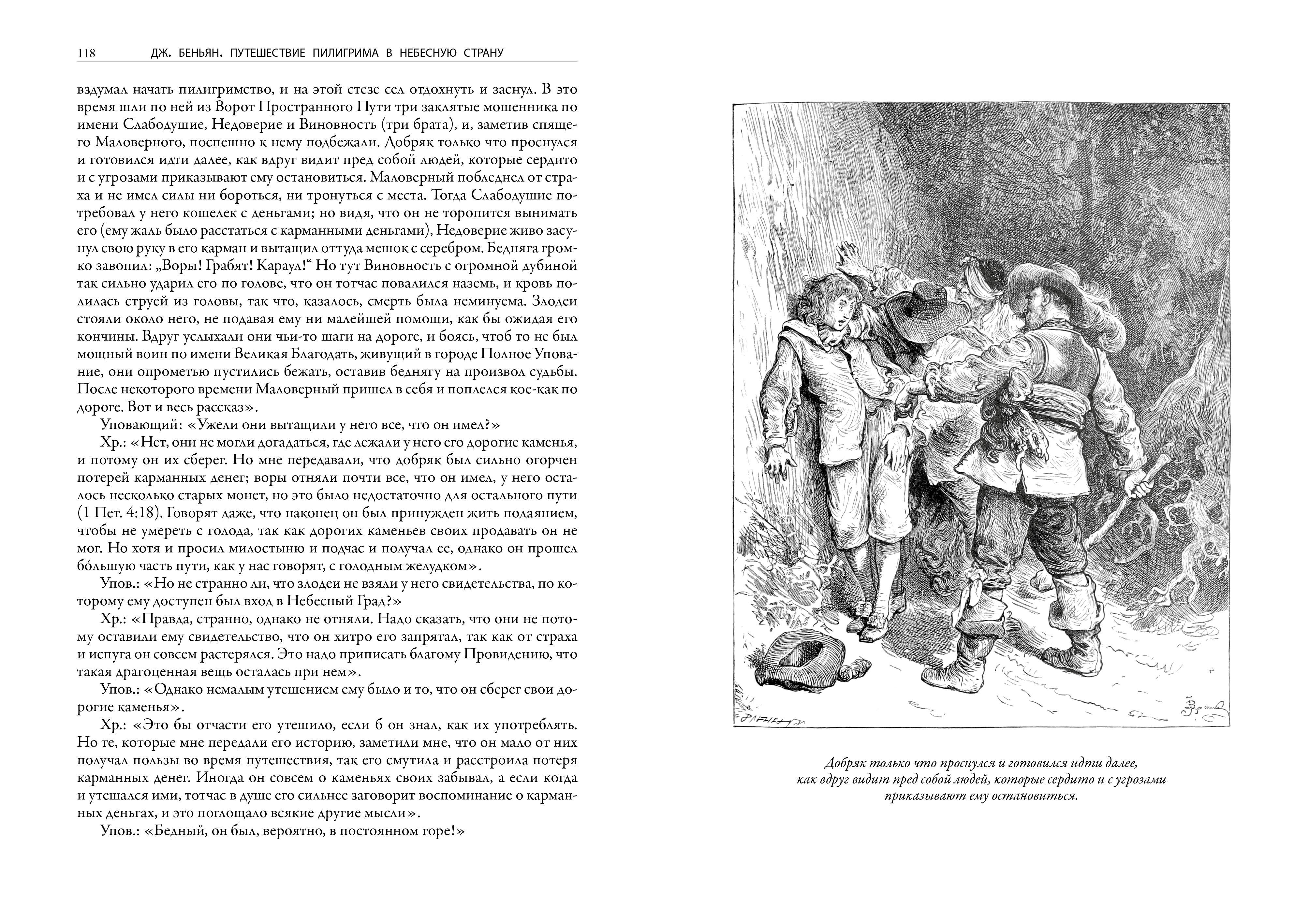 Роман классика английской религиозной литературы проповедника Джона Беньяна (1628–1688), большая аллегория о поиске человеком Бога, публикуется в переводе Ю. Д. З. — Юлии Денисовны Засецкой (1835–1882), известной русской протестантки, дочери героя Отечественной войны 1812 года Дениса Давыдова. Текст украшает 101 рисунок художников Фредерика Барнарда (1846–1896), сэра Джеймса Дромгоула Линтона (1840–1916), Уильяма Смолла (1843–1931) и др.; гравировка по дереву лондонской фирмы «Братья Далзил».