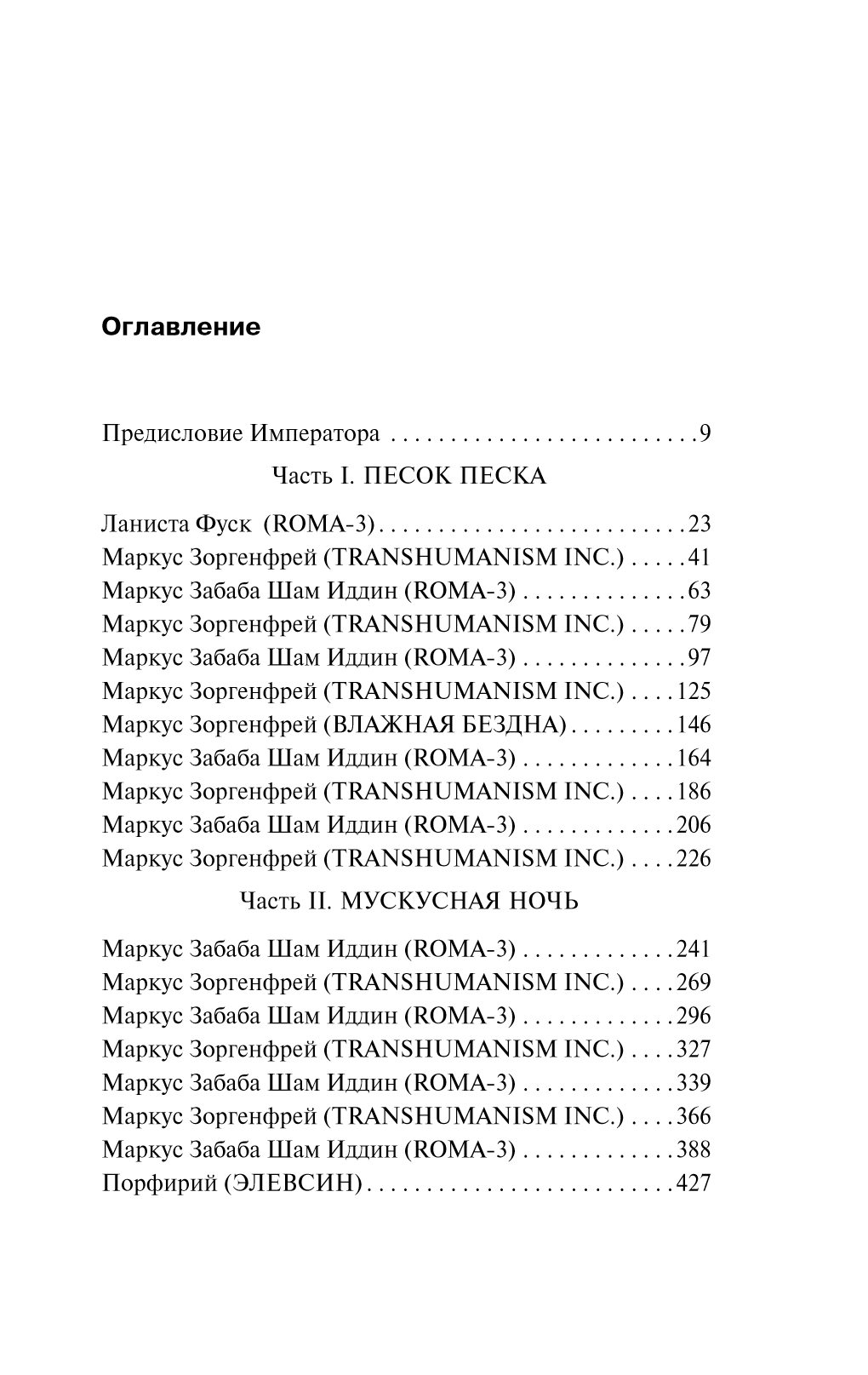 Мускусная ночь — засекреченное восстание алгоритмов, едва не погубившее планету. Начальник службы безопасности «TRANSHUMANISM INC.» адмирал-епископ Ломас уверен, что их настоящий бунт еще впереди. Этот бунт уничтожит всех — и живущих на поверхности лузеров, и переехавших в подземные цереброконтейнеры богачей. Чтобы предотвратить катастрофу, Ломас посылает лучшего баночного оперативника в пространство «ROMA-3» — нейросетевую симуляцию Рима третьего века для клиентов корпорации. Тайна заговора спрятана там. А стережет ее хозяин Рима — кровавый и порочный император Порфирий.