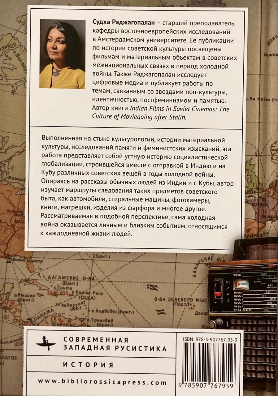 Выполненная на стыке культурологии, истории материальной культуры, исследований памяти и феминистских изысканий, эта работа представляет собой устную историю социалистической глобализации, строившейся вместе с отправкой в Индию и на Кубу различных советских вещей в годы холодной войны. Опираясь на рассказы обычных людей из Индии и с Кубы, автор изучает маршруты следования таких предметов советского быта, как автомобили, стиральные машины, фотокамеры, книги, матрешки, изделия из фарфора и многое другое. Рассматриваемая в подобной перспективе, сама холодная война оказывается личным и близким событием, относящимся к каждодневной жизни людей.
