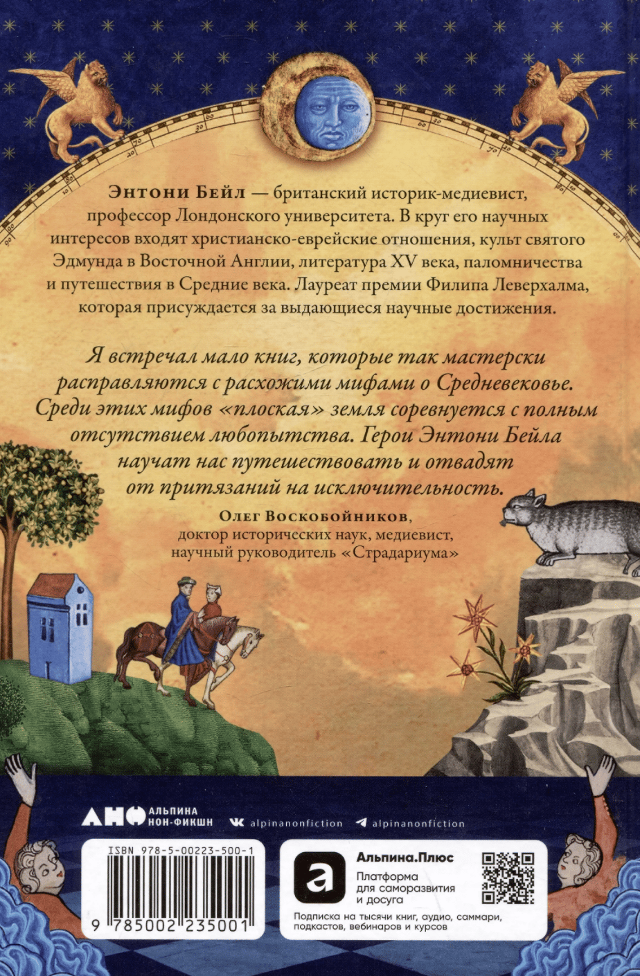 Британский историк-медиевист Энтони Бейл приглашает читателей в одиссею по миру Средневековья, полному чудес и неожиданностей, и пересказывает советы, которые передавались из уст в уста странниками того времени. Путешествуя вместе с учеными, шпионами, монахами в разные концы света, вы пройдете по улицам Рима, побываете при ханском дворе в Пекине, проедете верхом на осле по находящемуся под властью мамлюков Иерусалиму, посетите шумный базар Тебриза. Основанный на ранее не переводившихся документах того времени, свидетельствах пилигримов и странников, «Путеводитель по Средневековью» представляет собой остроумное и увлекательное исследование того, как европейцы воспринимали мир за пределами своего континента.