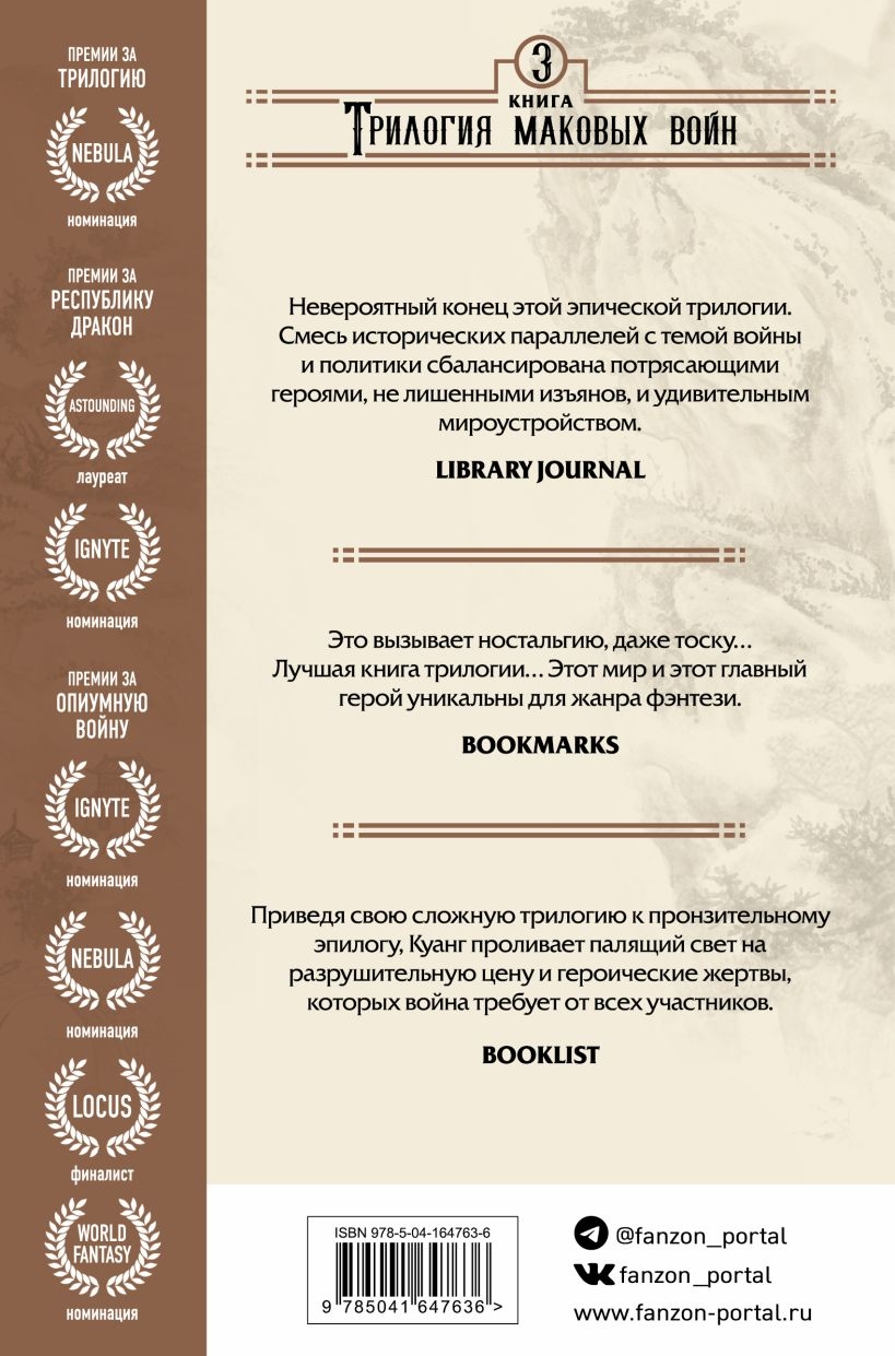Однако по мере роста ее силы и влияния крепнет опьяняющий голос Феникса, призывающий ее сжечь весь мир. И противостоять ему все сложнее...  Эффектное завершение трилогии "Опиумной войны", нашумевшего, отмеченного наградами эпического фэнтези Ребекки Куанг, которое сочетает в себе историю Китая как средних веков, так и недавнего прошлого с опасным миром богов и монстров.