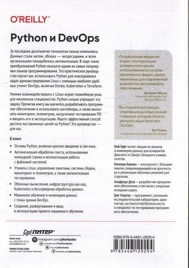 За последнее десятилетие технологии сильно изменились. Данные стали хитом, облака — вездесущими, и всем организациям понадобилась автоматизация. В ходе таких преобразований Python оказался одним из самых популярных языков программирования. Это практическое руководство научит вас использовать Python для повседневных задач администрирования Linux с помощью наиболее удобных утилит DevOps, включая Docker, Kubernetes и Terraform.