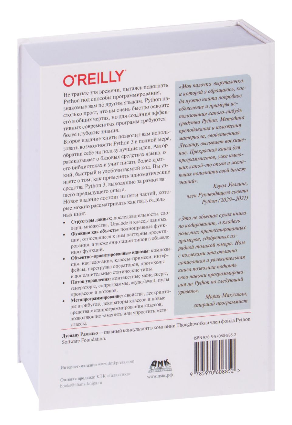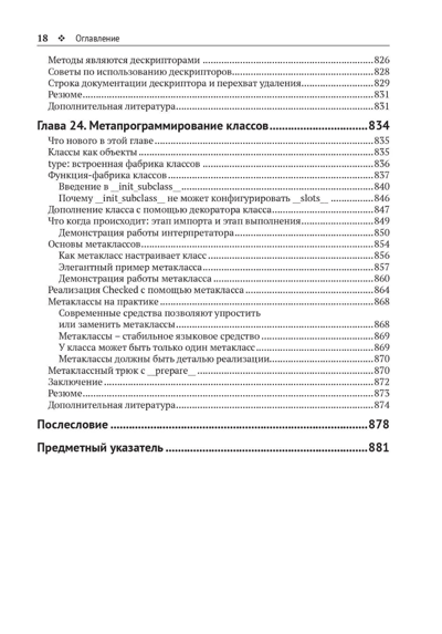 Не тратьте зря времени, пытаясь подогнать Python под способы программирования, знакомые вам по другим языкам. Python настолько прост, что вы очень быстро освоите его в общих чертах, но для создания эффективных современных программ требуются более глубокие знания. Второе издание книги позволит вам использовать возможности Python 3 в полной мере, обратив себе на пользу лучшие идеи. Автор рассказывает о базовых средствах языка, о его библиотеках и учит писать более краткий, быстрый и удобочитаемый код. Вы узнаете о том, как применять идиоматические средства Python 3, выходящие за рамки вашего предыдущего опыта. Новое издание состоит из пяти частей, которые можно рассматривать как пять отдельных книг.