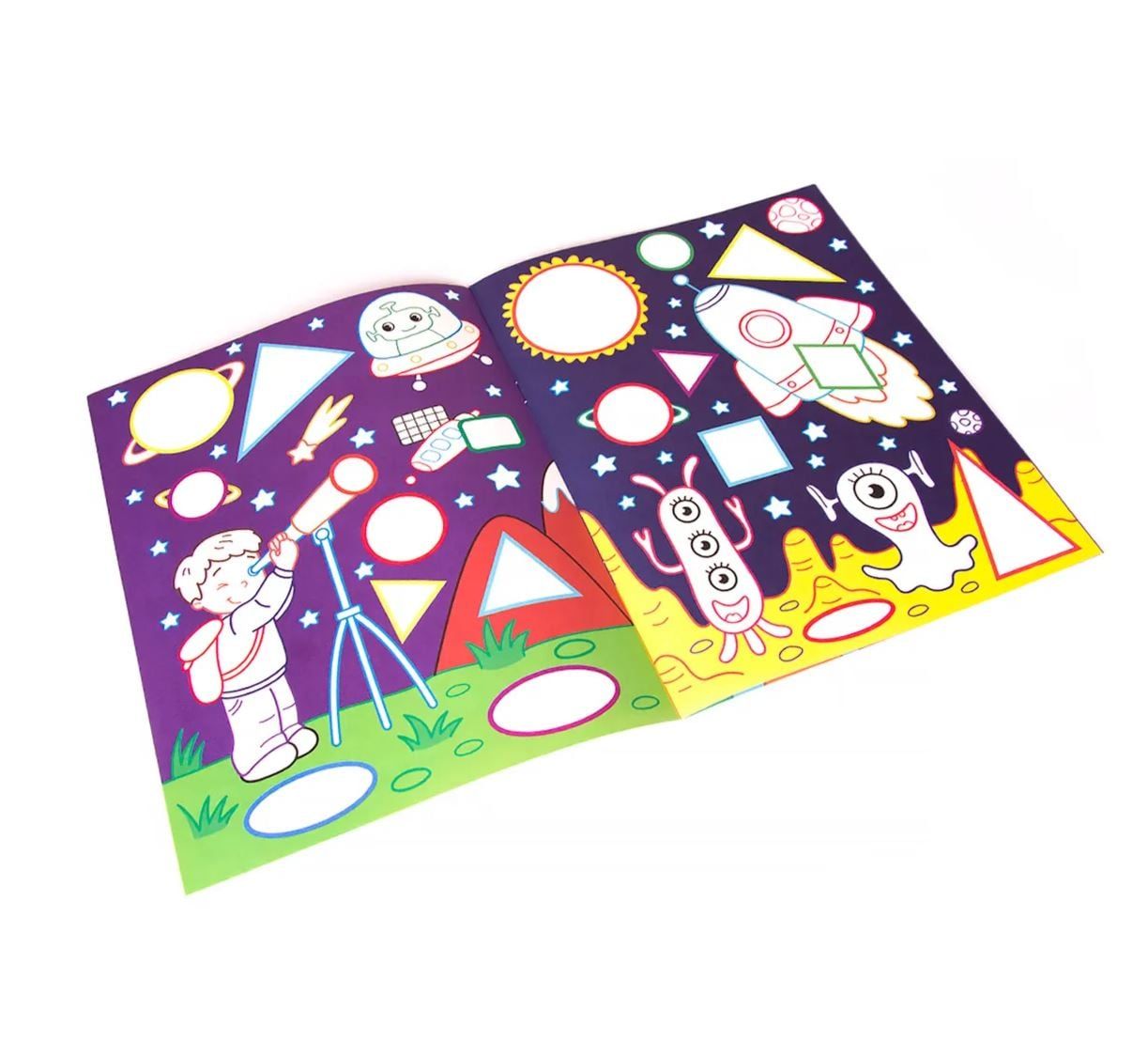 Раскраска для самых маленьких «‎Первые фигуры в космосе»‎ изготовлена из плотной бумаги. Все рисунки выполнены широким разноцветным контуром, расположены на цветном фоне. Раскраска не только увлекает вашего ребенка в космический полет, но и развивает его моторику, учит усидчивости, аккуратности, терпению. Раскраска станет приятным и полезным увлечением для вашего ребенка!