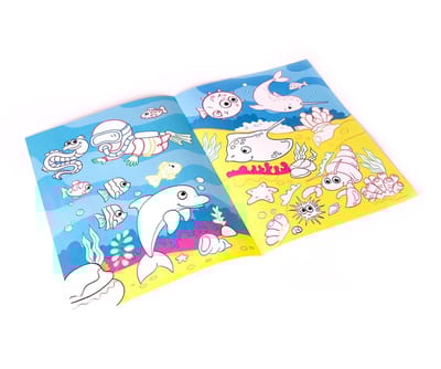 Раскраска для самых маленьких «‎Первое подводное путешествие»‎ изготовлена из плотной бумаги. Все рисунки выполнены широким разноцветным контуром, расположены на цветном фоне. Раскраска не только увлекает вашего ребенка в первое подводное путешествие, но и развивает его моторику, учит усидчивости, аккуратности, терпению. Раскраска станет приятным и полезным увлечением для вашего ребенка!