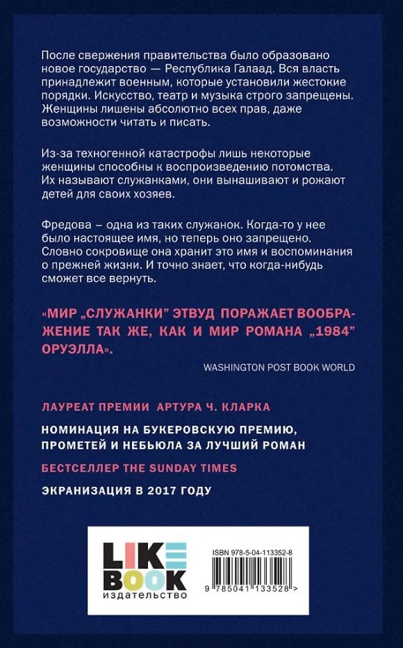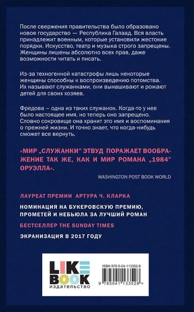 «Рассказ Служанки» — знаменитый антиутопический роман Маргарет Этвуд, неоднократно переиздававшийся и переведенный на многие языки, стоит в ряду с такими великими произведениями, как «1984» Дж. Оруэлла, «О дивный новый мир» О. Хаксли и «451° по Фаренгейту» Р. Брэдбери. Убедительная панорама будущего, которое может начаться уже завтра. Книга была удостоена Премии генерал-губернатора и Премии Артура Кларка. Также была номинирована на премию «Небьюла» и Букеровскую премию и «Прометей». Роман несколько раз был экранизирован — полнометражный фильм 1990 года и телесериал 2017 года.