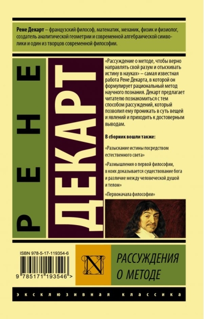 «Рассуждение о методе, чтобы верно направлять свой разум и отыскивать истину в науках» — самая известная работа Рене Декарта, в которой он формулирует рациональный метод научного познания. Декарт предлагает читателю познакомиться с тем способом рассуждений, который позволил ему проникать в суть вещей и явлений и приходить к достоверным выводам.