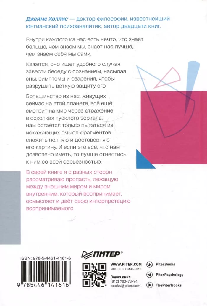 Выдающийся юнгианский аналитик исследует необходимость глубокого познания себя и многочисленные препятствия, стоящие на этом пути. Каждая глава иллюстрирует такие внутренние препятствия, например, запугивание себя масштабом проблемы, готовность избегать тяжёлой работы и грызущая неуверенность в себе, и также предоставляет инструменты для укрепления сознания, необходимые для преодоления этих препятствий.