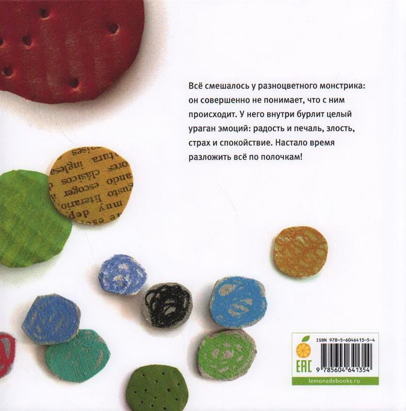 Все смешалось у разноцветного монстрика: он совершенно не понимает, что с ним происходит: у него внутри бурлит целый ураган эмоций: радость и печаль, злость, страх и спокойствие. Настало время разложить всё по полочкам! Книжка-картинка испанской художницы Анны Льенас об эмоциональном интеллекте, выполненная в коллажной технике, стала настоящим международным бестселлером: во всем мире уже продано более 4,5 млн экземпляров Монстрика!