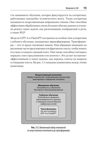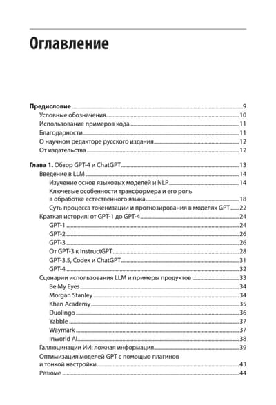 «Разработка приложений на базе GPT-4 и ChatGPT» содержит множество легковоспроизводимых примеров, которые помогут освоить особенности применения моделей в своих проектах. Все примеры кода на Python доступны в репозитории GitHub. Решили использовать возможности LLM в своих приложениях? Тогда вы выбрали правильную книгу.