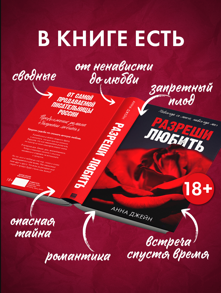 «Разреши любить» с атмосферной цветочной обложкой — долгожданное продолжение книги «Запрети любить» от самой продаваемой писательницы России Анны Джейн! Роман, в котором опасная тайна, ненависть и любовь сплетаются в головокружительную историю.