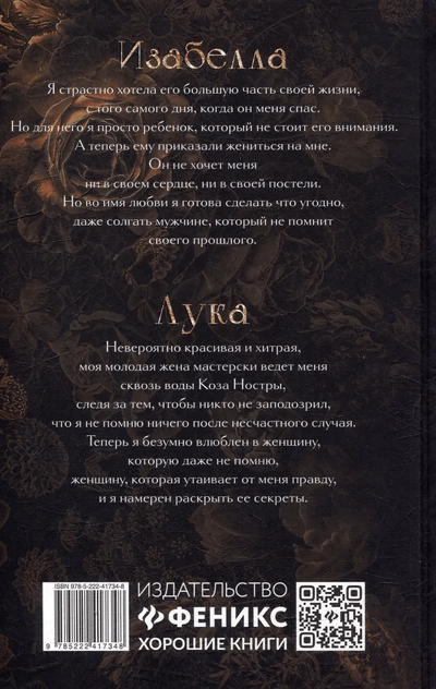 Спасший маленькую девочку Лука навсегда остался в ее сердце. Много лет спустя судьба связала их узами брака, и теперь Изабелла делает все, чтобы никто не заподозрил, что Лука потерял память после несчастного случая. Влюбленный в девушку, которую даже не помнит, в девушку, что утаивает правду об их отношениях, герой намерен раскрыть ее секреты.