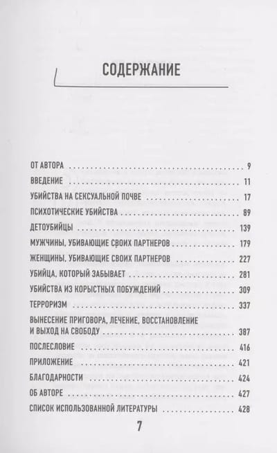 Главный вопрос, которым на протяжении всей своей карьеры задавался судебный психиатр Ричард Тейлор, мог бы звучать так: зачем люди убивают? В своей книге он рассказывает о преступлениях на сексуальной почве и в состоянии аффекта, финансово мотивированных, психотических и массовых, о детоубийствах и убийствах, связанных с терроризмом. Это взгляд изнутри на одну из самых редкий профессий, а также попытка разгадать мотивы людей, совершающих тяжкие преступления. Как решается, что будет с человеком после обвинения? Как судебный психиатр работает с преступником и что случается с теми, кто признан невменяемым? Что можно сделать, чтобы предотвратить повторение трагических событий? Вы узнаете, как происходит психиатрическая оценка преступника, а также о нашумевших делах, в которых автор принимал участие в качестве судебного психиатра. Судебные психиатры — это немногочисленная группа врачей, главная задача которых выяснить мотивы человека, находящегося под стражей, и установить, почему было совершено преступление. Для работы в этой сфере нужны крепкие нервы, хороший желудок, понимание юридического и психиатрического языка, а еще умение заглянуть в бездну и при этом не отшатнуться, увидев на самой ее глубине настоящее чудовище. Чтобы понять, какой человек сидит перед ним, судебный психиатр обычно задает ему разные вопросы: о семье, о работе или о новых интересах.