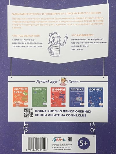 Конни в игровой форме знакомят детей с окружающим миром, помогают развивать мелкую моторику, тренировать письмо, счет, чтение и приобретать полезные навыки.