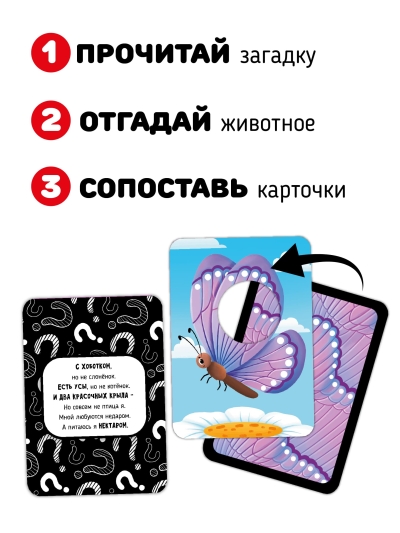 В наборе игры 36 карточек из плотного картона. Ребенку предстоит познакомиться с животными и подобрать для каждого свой окрас. В ходе игры можно экспериментировать и веселиться – составлять необычные сочетания и фантазировать.