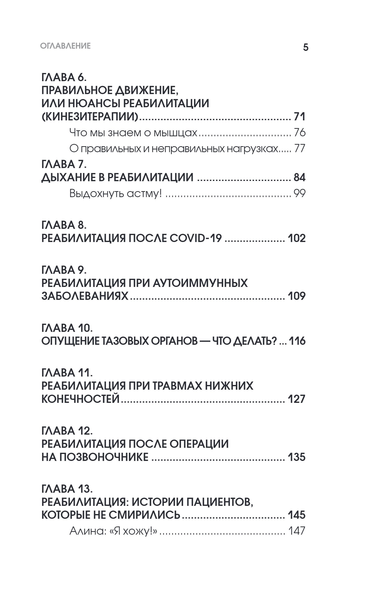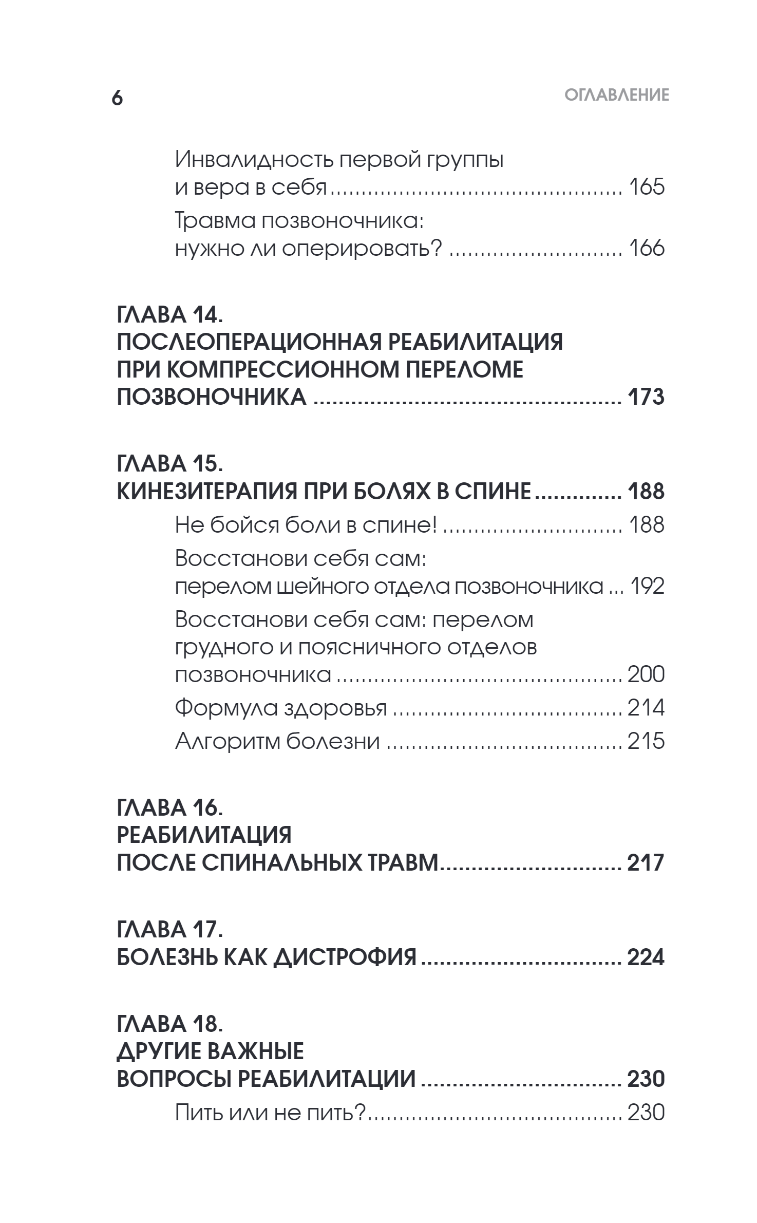 Как говорит врач, каждая ситуация требует индивидуального подхода. Травмы и операции у каждого человека уникальны и, в каком-то смысле, эксклюзивны, а потому универсального средства для восстановления нет и быть не может. Эта книга дает необходимые ориентиры для понимания природы болезни или состояния организма и предлагает подходы к лечению, которые под грамотным надзором специалиста могут поставить вас на ноги.