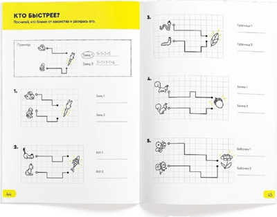 «Реши-пиши» — это не обычная пропись или набор скучных примеров на сложение и вычитание. Задания для тетрадей спроектированы особым образом, чтобы дети с удовольствием брались за их решение и подолгу не могли оторваться от процесса. В тетради 23 типа заданий, варианты которых постепенно переходят от лёгкого к сложному. Одни задания помогут развитию логического и пространственного мышления, другие — разобраться в счёте и числовых рядах, а часть заданий прокачают знание букв и умение читать.