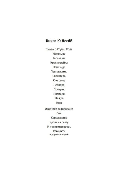 Ю Несбё, норвежский писатель и ведущий представитель северного нуара, не перестает удивлять. Ломая стереотипы, пренебрегая правилами жанра, он показывает человека так откровенно, как если бы мы сами смотрели в зеркало, боясь себе признаться: это я. «В моей голове нет и не будет никакой цензуры», — утверждает Несбё. Он никогда не раскрывает своих замыслов заранее, и до недавнего времени было известно лишь то, что писатель работает над двумя сборниками короткой прозы. В первый из них вошли семь криминальных историй, объединенных темой ревности: чувства древнего, сильного, болезненного, неподвластного воле, изменяющего человеческую природу. Двое знакомятся в самолете. Она рассказывает, что хотела умереть из-за измены мужа и подписала договор с компанией, инсценирующей самоубийства. Если бы женщина знала, кто сидит в соседнем кресле... На греческом острове пропал турист, и для расследования приглашен детектив, обладающий уникальной способностью распознавать ревность при допросе... Подозрение падает на брата пропавшего человека, и этот мотив Каина и Авеля перекликается с сюжетом последнего романа Несбё «Королевство». Ревность прикрывается жаждой справедливости, сводит с ума, отравляет жизнь и меняет ее к лучшему лишь в том случае, когда соперника удается в прямом и переносном смысле убрать. Среди героев Несбё есть и циники, и простаки, но они всегда поступают непредсказуемо — даже для самих себя, потому что перед зеленоглазым чудовищем человеческая логика бессильна.