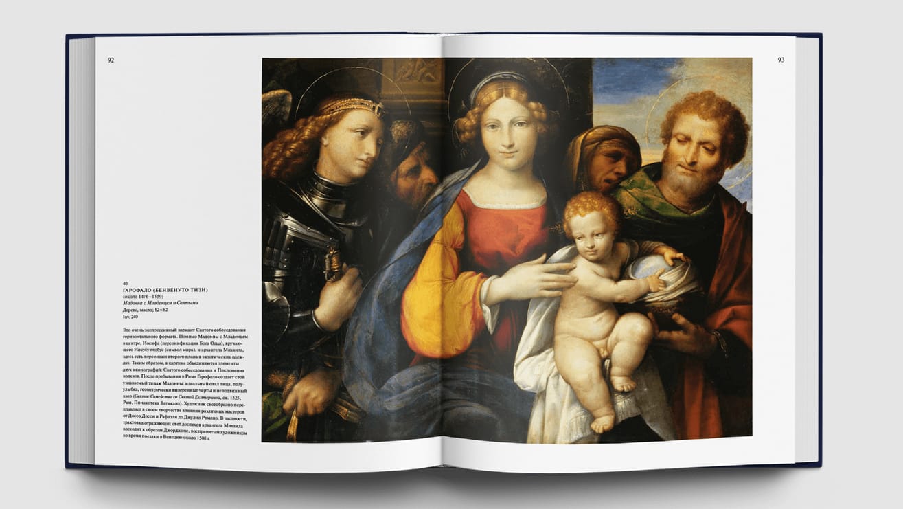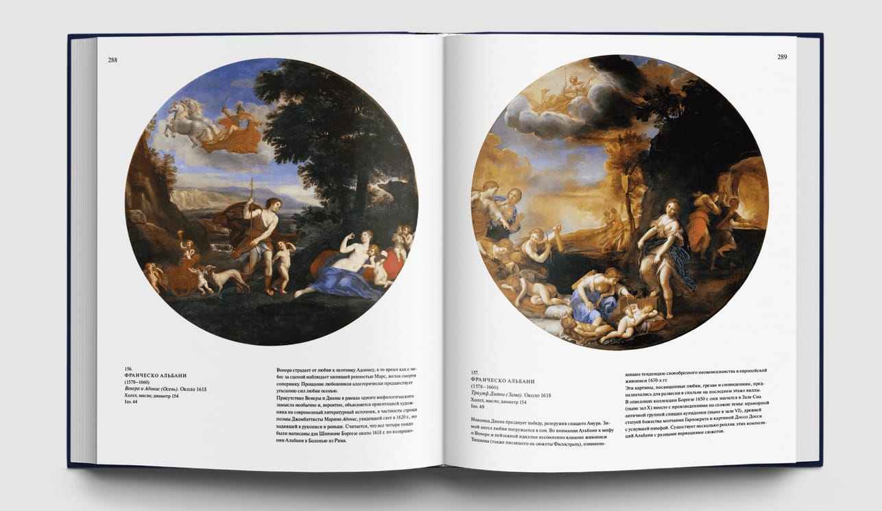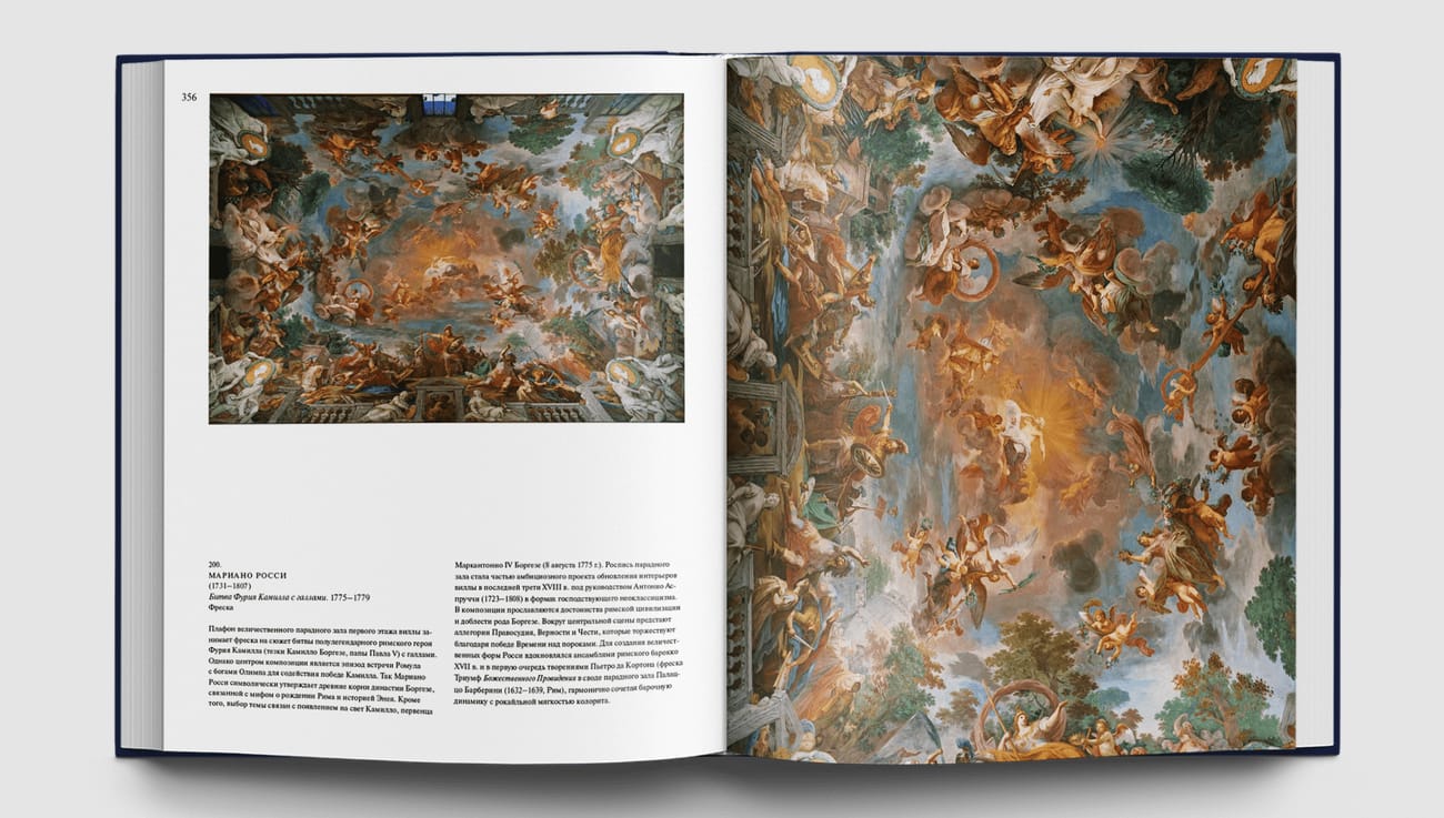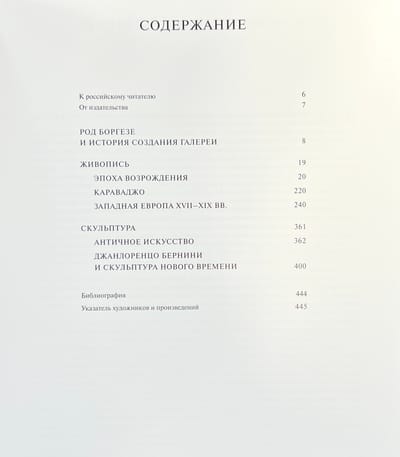 Альбом знакомит со знаменитой римской галереей Боргезе, с коллекцией античного искусства и скульптуры Нового времени, шедеврами Ренессанса и работами художников XVII-XVIII вв., собранной одним из самых знаменитых и могущественных родов Италии и хранящейся в прекрасном дворце, построенном специально для произведений искусства. Здесь хранятся великолепные скульптуры Бернини, полотна Рафаэля и Тициана, Джованни Беллини и Паоло Веронезе, Перуджино и Корреджо, Кранаха и Рубенса и других знаменитых мастеров.