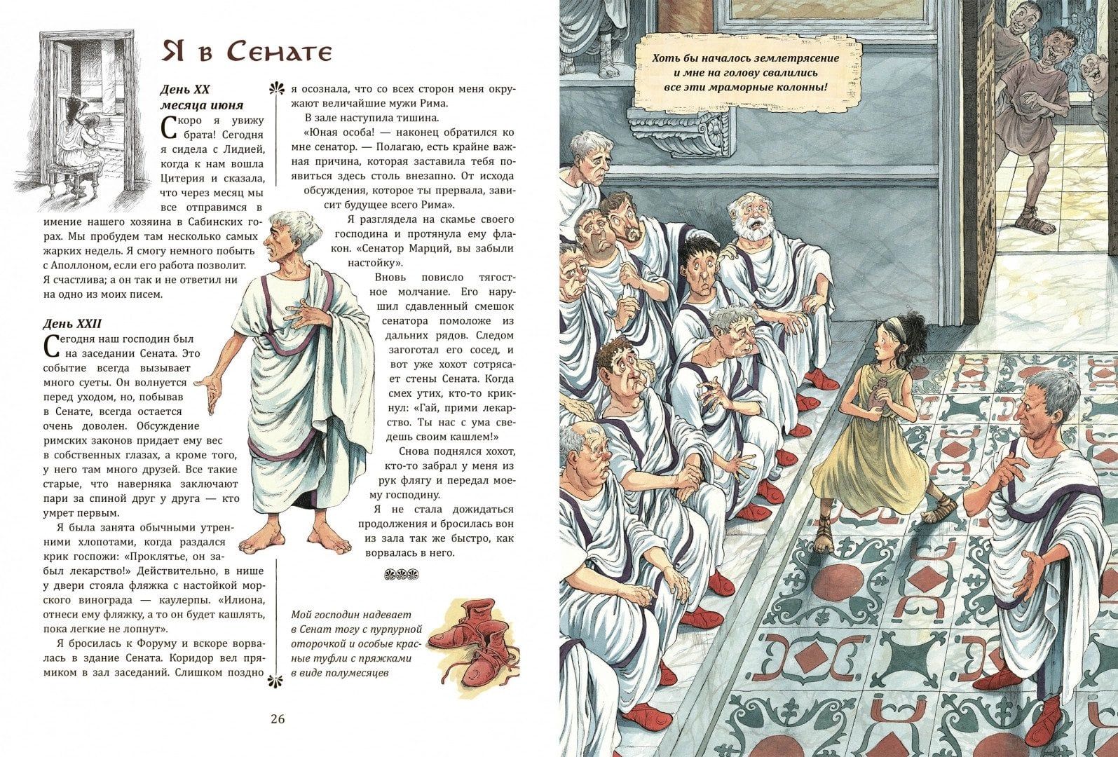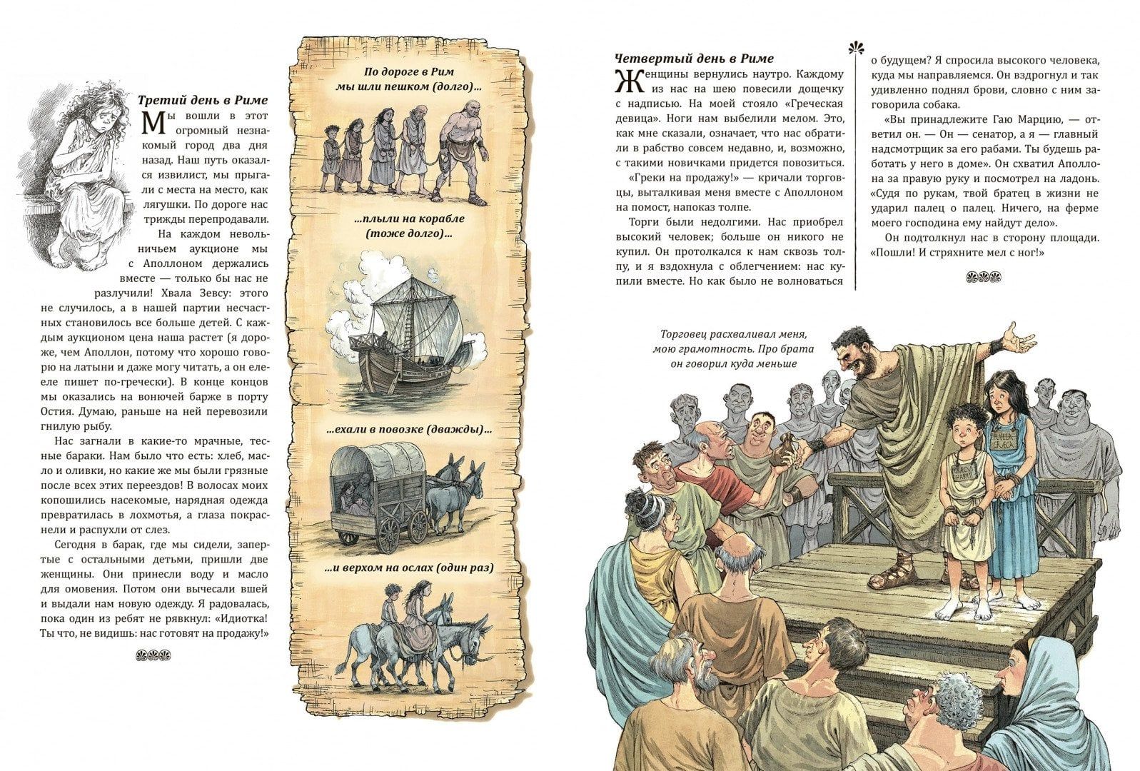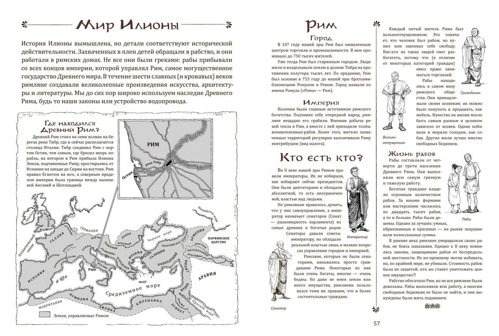 Новый дневник о новой жизни я начинаю в третий год 221-й Олимпиады. Послезавтра мы уплываем в Египет. На галере! Я никогда не бывала за пределами Лесбоса, нашего греческого острова. Здесь, в Митилене, мы живём в большом красивом доме. Но в Египте наш дом будет ещё больше. Всё будет по-другому. Поскорее бы начались приключения… Хочешь очутиться в древнем Риме, столице великой Римской империи? Отправиться на представление в театр Помпея? Увидеть триумф императора Траяна? Посмотреть на гладиаторские бои? Выкупаться в термах Нерона? Побывать в сенате? Илиона расскажет обо всем, что должен знать житель Вечного города! Мир Древнего Рима оживил художник Дэвид Паркинс. Его детальные иллюстрации покажут жизнь римлян - от раба до императора - во всех подробностях.