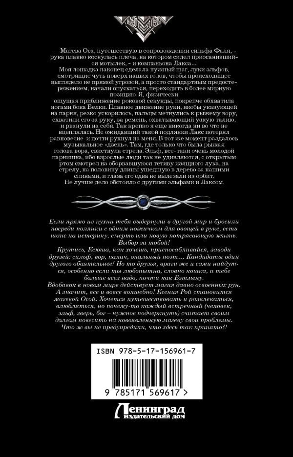 Ксения Рой становится магевой Осой. Хочется путешествовать и развлекаться, влюбляться, но почему-то каждый встречный (человек, эльф, зверь, бог – нужное подчеркнуть) считает своим долгом повесить на новоявленную магеву свои проблемы. Что ж вы не предупредили, что здесь так принято?!