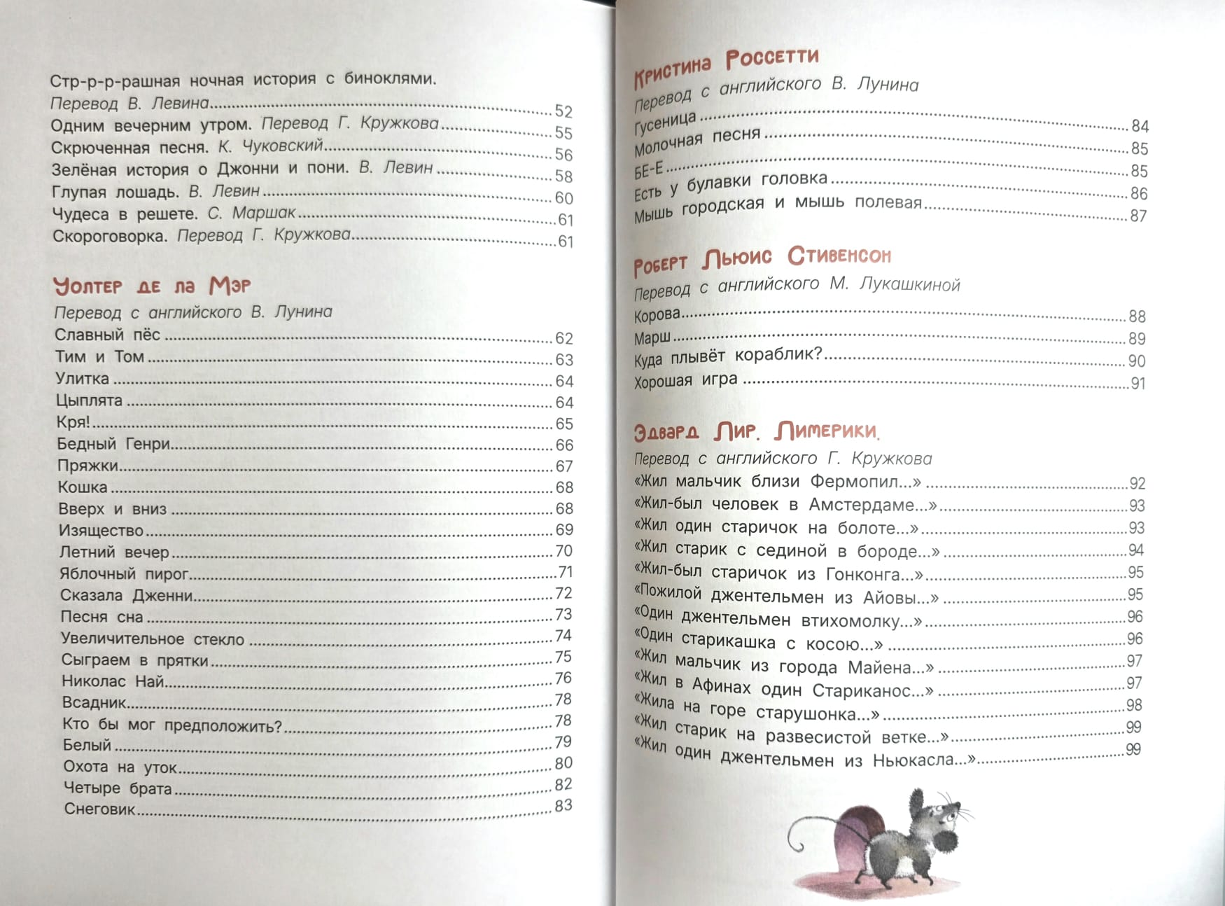Все это звучало по русски благодаря класикам перевода К.Чуковскому, С.Маршаку, И.Токмаковой. Вас ожидает большое путешествие в настоящий мир поэзии, где вы познакомитесь с Крошкой Вилли Винки, Робином Бобином, Мауси и многими другими полюбившимися героями.