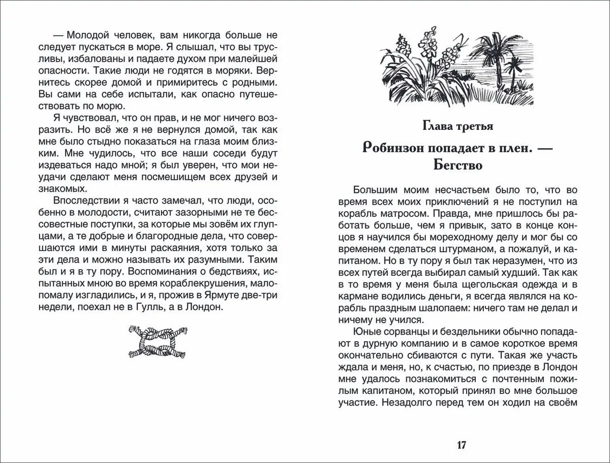Действие знаменитого романа английского писателя Даниэля Дефо об удивительных приключениях морехода Робинзона Крузо происходит в середине XVII века. Потерпев кораблекрушение, он попал на далекий необитаемый остров, где выжил исключительно благодаря своей решительности и отваге.