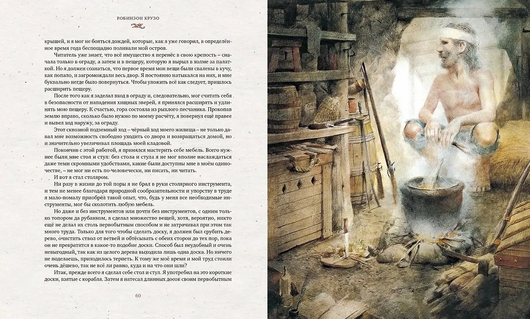 Захватывающая история отважного моряка увлекает читателей многих поколений, пробуждает фантазию, вдохновляет юных романтиков. Пример Робинзона Крузо - это пример человека мужественного, стойкого, способного с честью вынести все испытания и трудности, сумевшего не потерять веру в себя, не отчаяться в поединке с грозной стихией. Известный австралийский художник, лауреат Международной премии имени Х. К. Андерсена Роберт Ингпен, впечатлённый историей Робинзона Крузо, создал серию великолепных рисунков к этому знаменитому роману. Ингпен является автором иллюстраций и к таким произведениям классической литературы, как «Остров Сокровищ», «Книга джунглей», «Приключения Тома Сойера», «Рождественская ёлка», «Алиса в Стране чудес», «Приключения Пиноккио», «Питер Пэн и Венди», «Щелкунчик», «Ветер в ивах», «Удивительный волшебник из Страны Оз», «Вокруг света в восемьдесят дней». Издательство «Махаон» гордится тем, что может представить вам эти замечательные книги.