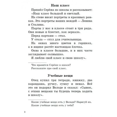 Когда ребёнок начинает своё знакомство с языком, родной речью, литературой, необычайно важно, чтобы оно было ярким и запоминающимся. Огромную роль в этом играют книги, благодаря которым малыши впервые встречаются со словом. Учебники, издававшиеся в советское время, и утверждённые Министерством просвещения РСФСР, соответствовали всем необходимым требованиям. Настоящее пособие представляет собой текст оригинального советского учебника. Книга построена таким образом, чтобы дети не только читали, но и учились анализировать прочитанное. К каждому тексту прилагаются простые вопросы, помогающие легче усвоить информацию и подготовить учеников к изучению различных дисциплин, таких как история и естествознание. Издание содержит произведения Л. Толстого, С. Аксакова, М. Лермонтова, А. Пушкина, В. Одоевского, Н. Некрасова, Б. Житкова, И. Соколова-Микитова, С. Михалкова, А. Барто, К. Чуковского, В. Маяковского, К. Ушинского, И. Крылова, М. Пришвина, А. Плещеева, А. Майкова, В. Бианки, а также русские народные сказки, пословицы и загадки. Учебник идеально подходит в качестве внеклассного чтения для первоклассников.