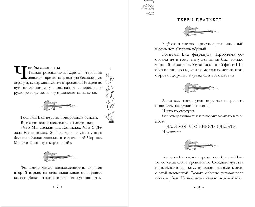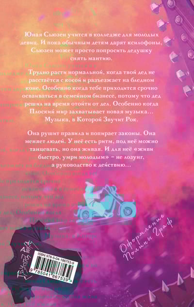 Трудно расти нормальной, когда твой дед не расстаётся с косой и разъезжает на бледном коне. Особенно когда тебе приходится срочно осваиваться в семейном бизнесе, потому что дед решил на время отойти от дел. Особенно когда Плоский мир захватывает новая музыка… Музыка, в Которой Звучит Рок.