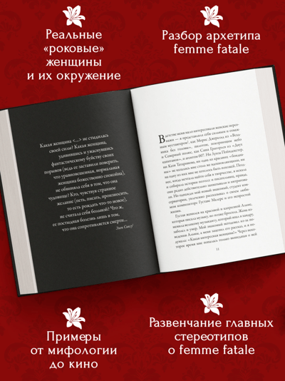 «Роковые женщины: яд или нектар» — увлекательное исследование, которое развенчивает главные мифы о femme fatale. Это смелый разговор о праве женщины быть сложной, амбициозной, неудобной. И в первую очередь — собой.