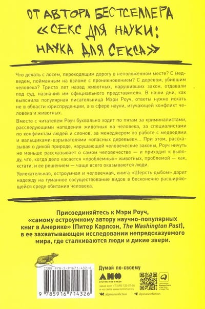 Увлекательная, остроумная и человечная книга «‎Шерсть дыбом»‎ дарит надежду на гуманное сосуществование видов в бесконечно расширяющейся среде обитания человека.
