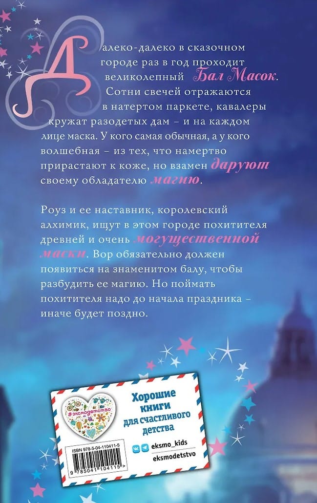 Далеко-далеко в сказочном городе раз в год проходит великолепный Бал Масок. Сотни свечей отражаются в натертом паркете, кавалеры кружат разодетых дам и на каждом лице маска. У кого самая обычная, а у кого волшебная из тех, что намертво прирастают к коже, но взамен даруют своему обладателю магию. Роуз и ее наставник, королевский алхимик, ищут в этом городе похитителя древней и очень могущественной маски. Вор обязательно должен появиться на знаменитом балу, чтобы разбудить ее магию. Но поймать похитителя надо до начала праздника иначе будет поздно.