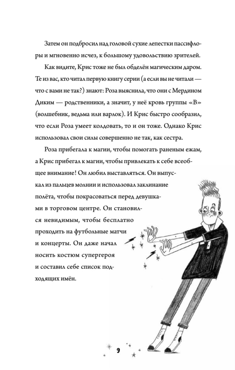 О, это же старые знакомые! Волшебник Мерлин Великий, который когда-то был самым невоспитанным в мире магом по имени Мердин Дикий, 12-летняя девочка Роза и её говорящая морская свинка Бублик. Помните их по первой части? В этот раз Роза уже вовсю пользуется своими магическими способностями… Как и её невозможный, раздражающий брат Крис, которому магия нужна лишь, чтобы развлекать своих дружков. Но как только Крис внезапно исчезает и попадает в плен в Средневековье, в руки ужасных варваров и злой ведьмы, Роза вдруг понимает – брат ей очень дорог. Теперь девочке предстоит отправиться в далёкое прошлое, вновь отыскать там своего предка Мердина, спасти Криса, а заодно и весь мир! Искренняя и смешная книга о настоящей дружбе, заботе о близких, верности себе и важности щепотки магии в жизни каждого из нас. Для детей среднего школьного возраста.