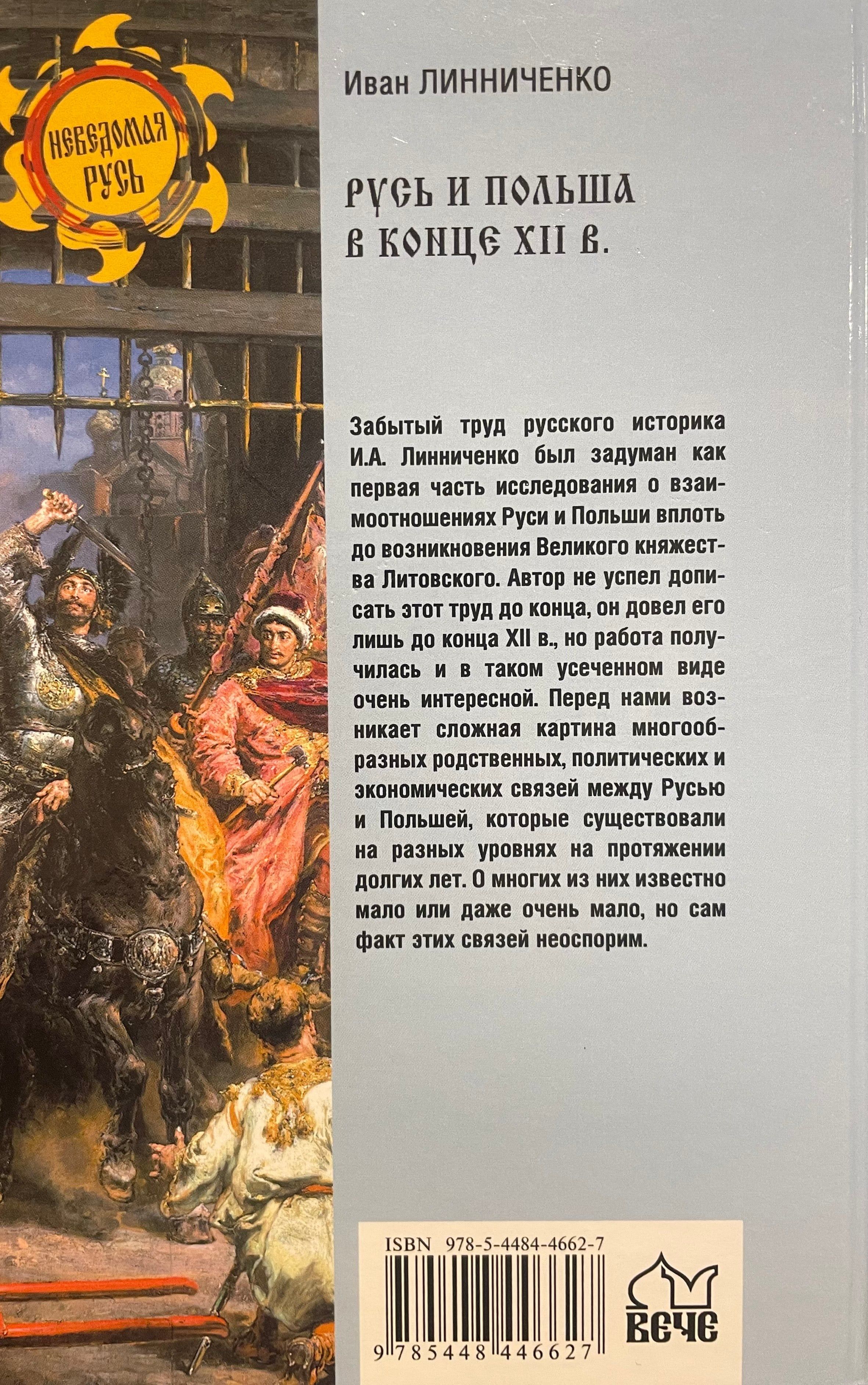 Забытый труд русского историка И.А. Линниченко был задуман как первая часть исследования о взаимоотношениях Руси и Польши вплоть до возникновения Великого княжества Литовского. Автор не успел довести этот труд до конца, он довел его лишь до конца XII в., но работа получилась и в таком усеченном виде очень интересной. Перед нами возникает сложная картина многообразных родственных, политических и экономических связей между Русью и Польшей, которые существовали на разных уровнях на протяжении долгих лет. О многих из них известно мало или даже очень мало, но сам факт этих связей неоспорим.