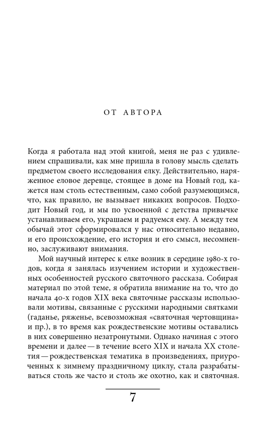 Автор рассказывает, как этот обычай входил в русский культурный обиход, завоевывал популярность, и какие преграды он встречал на своем пути. Обращаясь одновременно к художественной литературе и широкому кругу документальных источников — мемуарам, дневникам, газетам и журналам, — Елена Душечкина бережно реконструирует путь, который прошла елка, прежде чем стать важной частью нашей праздничной традиции. Елена Душечкина (1941–2020) — доктор филологических наук, профессор СПбГУ, выдающийся специалист по русской литературе и культуре.