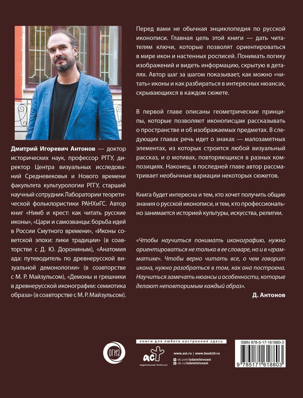 Перед вами не обычная энциклопедия по русской иконописи. Главная цель этой книги — дать читателям ключи, которые позволят ориентироваться в мире икон и настенных росписей. Понимать логику изображений и видеть информацию, скрытую в деталях. Автор шаг за шагом показывает, как можно «читать» иконы и как разбираться в интересных нюансах, скрывающихся в каждом сюжете.
