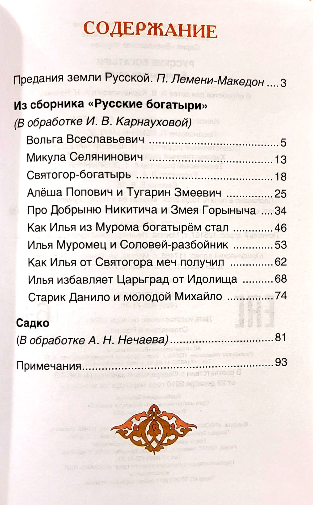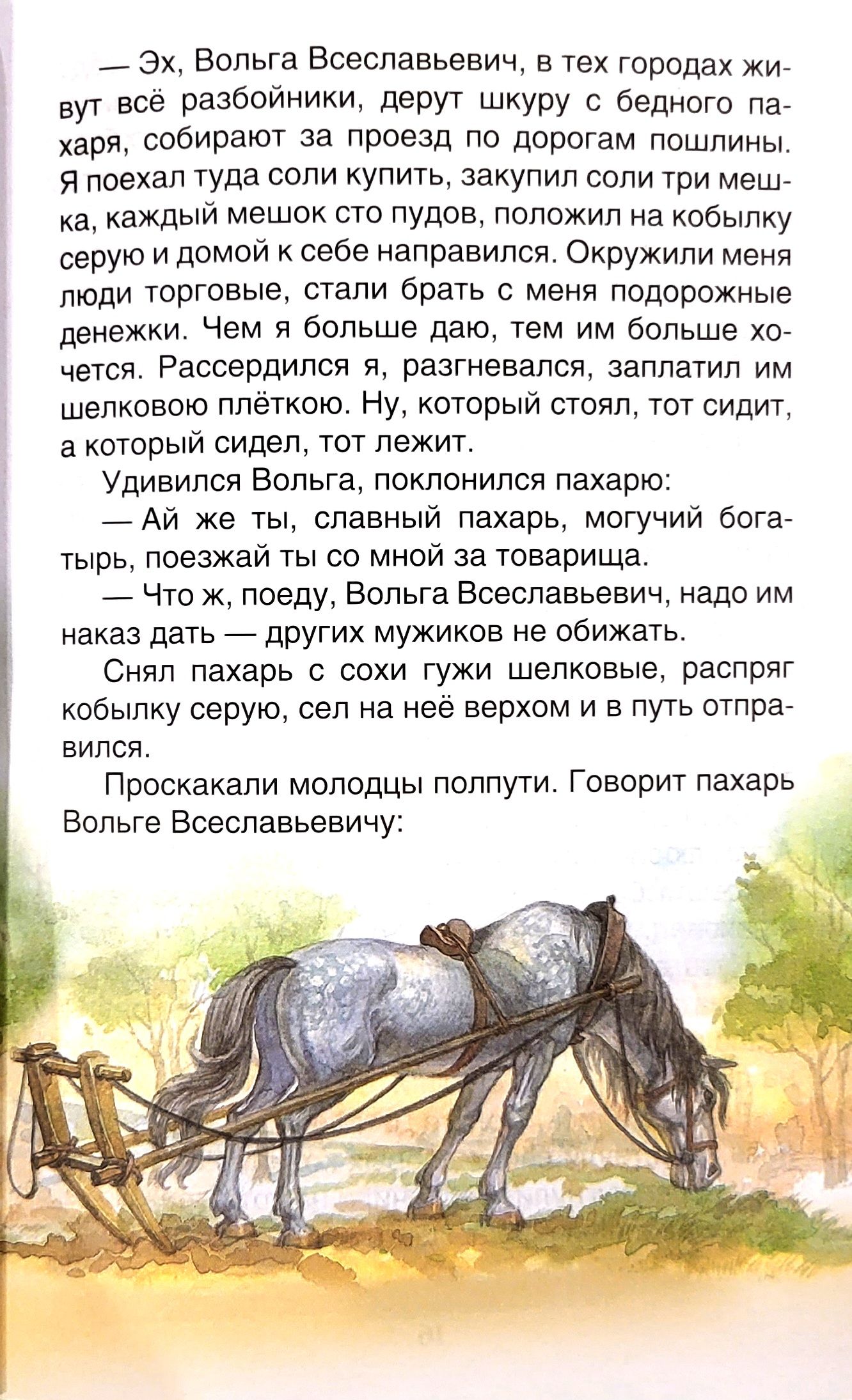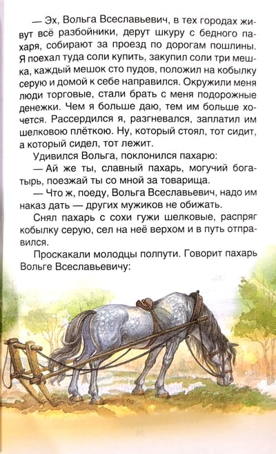Былины — это народные сказания о славных подвигах богатырей Древней Руси. В сборник вошли былины о Вольге Всеславьевиче, Микуле Селяниновиче, Святогоре-богатыре, Алеше Поповиче, Добрыне Никитиче, Илье Муромце, Садко и др. в пересказе известных русских фольклористов И. В. Карнауховой и А. Н. Нечаева.