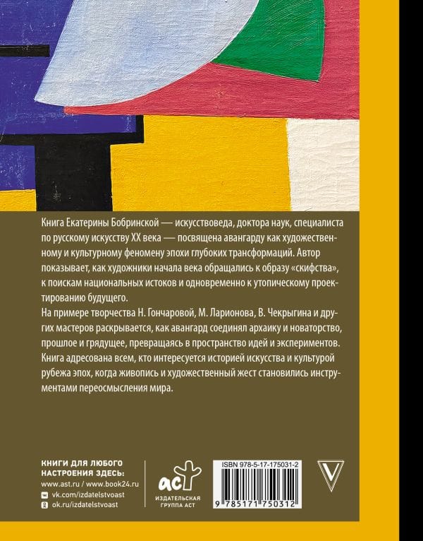 Книга Екатерины Бобринской — искусствоведа, доктора наук, специалиста по русскому искусству ХХ века — посвящена авангарду как художественному и культурному феномену эпохи глубоких трансформаций. Автор показывает, как художники начала века обращались к образу «скифства», к поискам национальных истоков и одновременно к утопическому проектированию будущего.