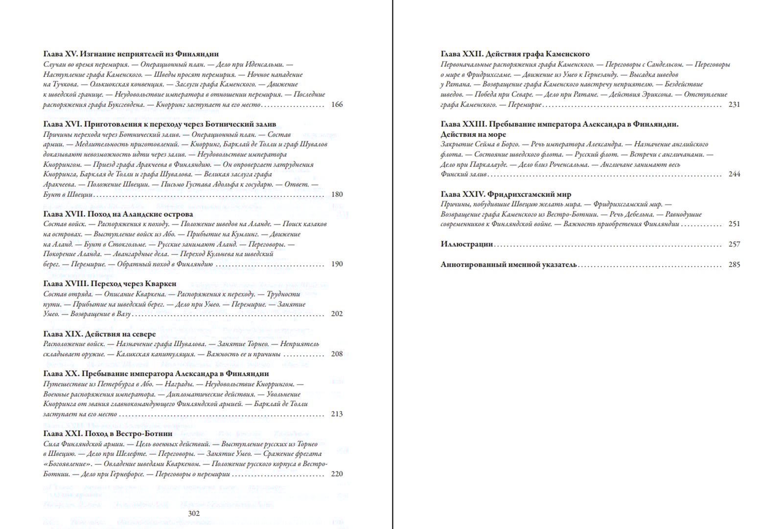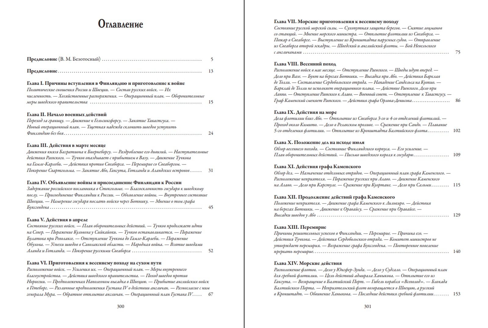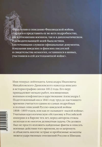 Автор составил описание войны на основе официальных документов, трудов шведских и финских писателей и свидетельств немногих остававшихся в то время живых участников событий. В работе изложены успехи и неудачи воевавших сторон, ошибки полководцев, причины и следствия побед и поражений, мужественная оборона шведов и финнов, преодоление русскими твердой защиты, противопоставленной им и неприятелями, и самой природой, дипломатические перипетии. Книга, изданная в 1841 году и более не переиздававшаяся, не утратила своего значения до настоящего времени, в первую очередь в связи с огромным фактическим материалом, собранным автором. Снабженная научными комментариями и современным справочным аппаратом, она будет представлять интерес как для широкого читателя, так и для специалистов.
