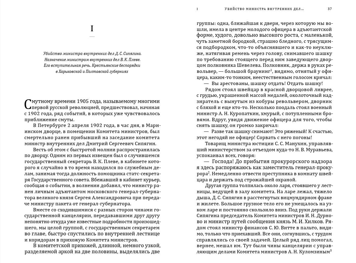 Будучи внимательным наблюдателем, подмечавшим многие характерные черты эпохи и ее героев, автор подробно описывает, как принимались ключевые решения, так или иначе сказавшиеся на судьбе страны. В мемуарах немало бытовых подробностей, показательных деталей из жизни российской бюрократии начала XX в. В ряде случаев информация уникальная, нигде более не повторяющаяся.