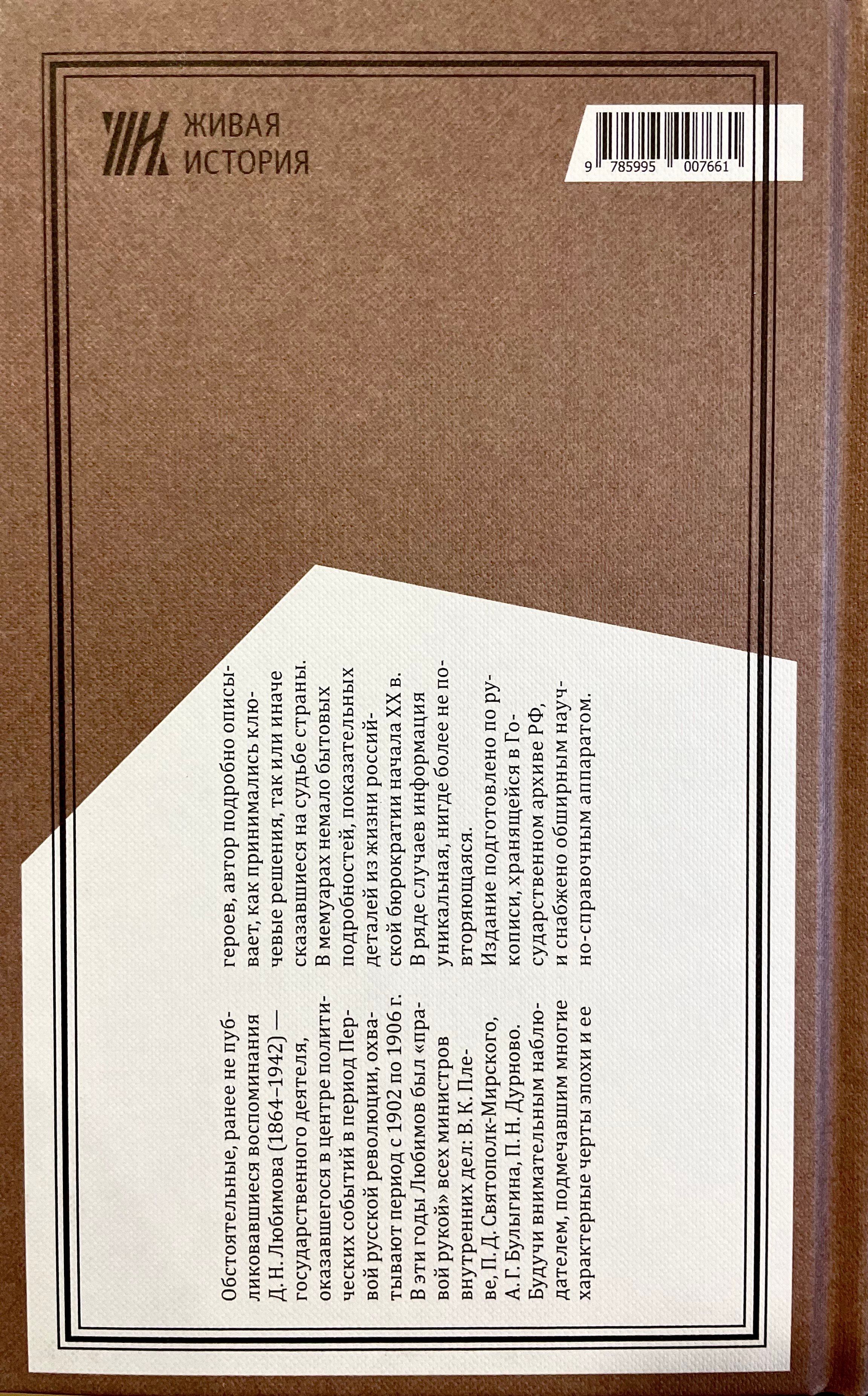 Обстоятельные, ранее не публиковавшиеся воспоминания Д. Н. Любимова (1864–1942) — государственного деятеля, оказавшегося в центре политических событий в период Первой русской революции, охватывают период с 1902 по 1906 г. В эти годы Любимов был «правой рукой » всех министров внутренних дел: В. К. Плеве, П. Д. Святополк-Мирского, А. Г. Булыгина, П. Н. Дурново.