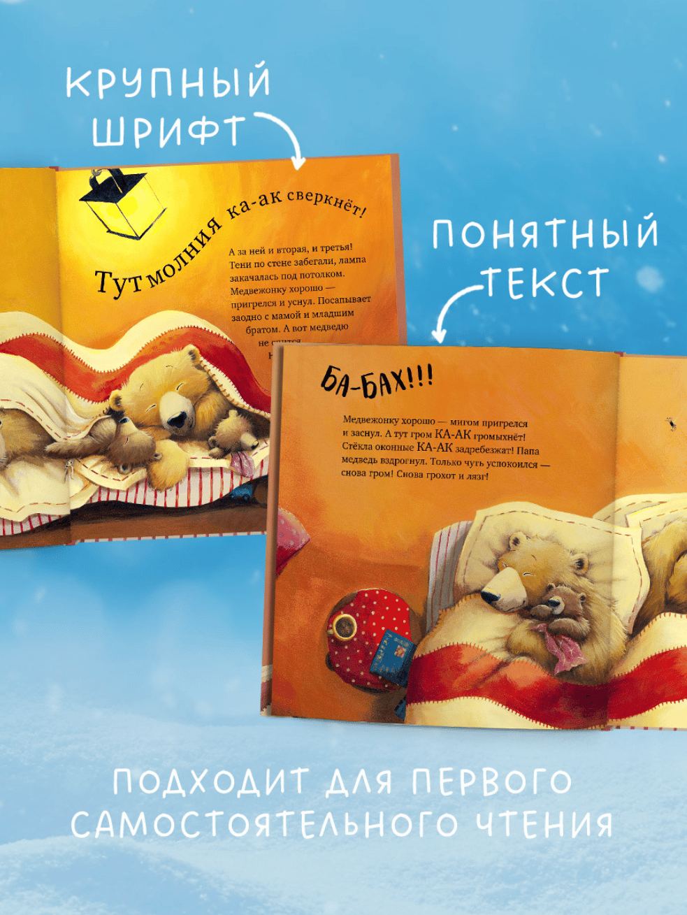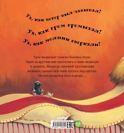 «С папой буря не страшна!» — красочная книжка-картинка, добрая и веселая сказка о семье медведей. В далеком лесу бушует ураган! Сверкают молнии, пляшут странные тени и кажется, будто чудище воет у двери! Как тут заснуть маленьким медвежатам? Самое уютное и безопасное место сейчас — комната мамы и папы, ведь с папой буря не страшна! Вот только и папе теперь не спится! Шумит лес, ветви деревьев стучат в окно, гремит гром. И что это за жуткая тень на стене? Быть может медвежата правы, и за дверью кто-то есть? Кого встретили медведи вы узнаете в этой забавной сказке! Чудесные иллюстрации очаруют и детей, и взрослых, а добрая история рассмешит и научит не бояться неизвестного.
