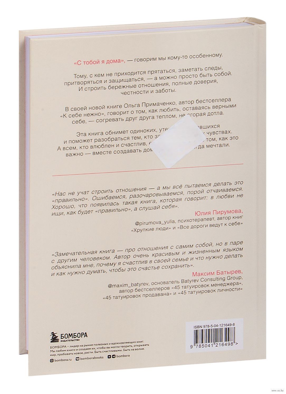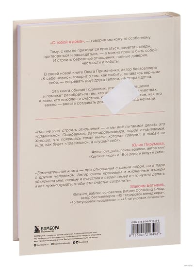 «С тобой я дома», — говорим мы кому-то особенному. Тому, с кем не приходится прятаться, заметать следы, притворяться и защищаться, — а можно просто быть собой. И строить бережные отношения, полные доверия, честности и заботы. В своей новой книге Ольга Примаченко, автор бестселлера «К себе нежно», говорит о том, как любить, оставаясь верными себе, — согревать друг друга теплом, не сгорая дотла. Эта книга обнимет одиноких, утешит расставшихся и поможет разобраться тем, кто запутался в своих чувствах. А всем, кто влюблен и счастлив, еще раз напомнит о том, как это важно — вместе создавать дом, о котором всегда мечтали.