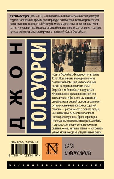 «Сагу о Форсайтах» Голсуорси писал более 15 лет. Поистине не имеющий аналогов по масштабности цикл, охватывающий жизни не одного поколения семьи Форсайт и их ближайшего окружения. Неоднократно служившая основой для телесериалов и фильмов, эта эпическая семейная сага, с одной стороны, поднимает острые социальные вопросы, а с другой — рассказывает о судьбах людей, чьи жизненные перепитии не оставят никого равнодушным. Яркие характеры, неожиданные сюжетные повороты, любовь и страсть, сметающие все на своем пути, сплетни, козни, интриги, тайны, — вот основа успеха этой никогда не устаревающей книги.