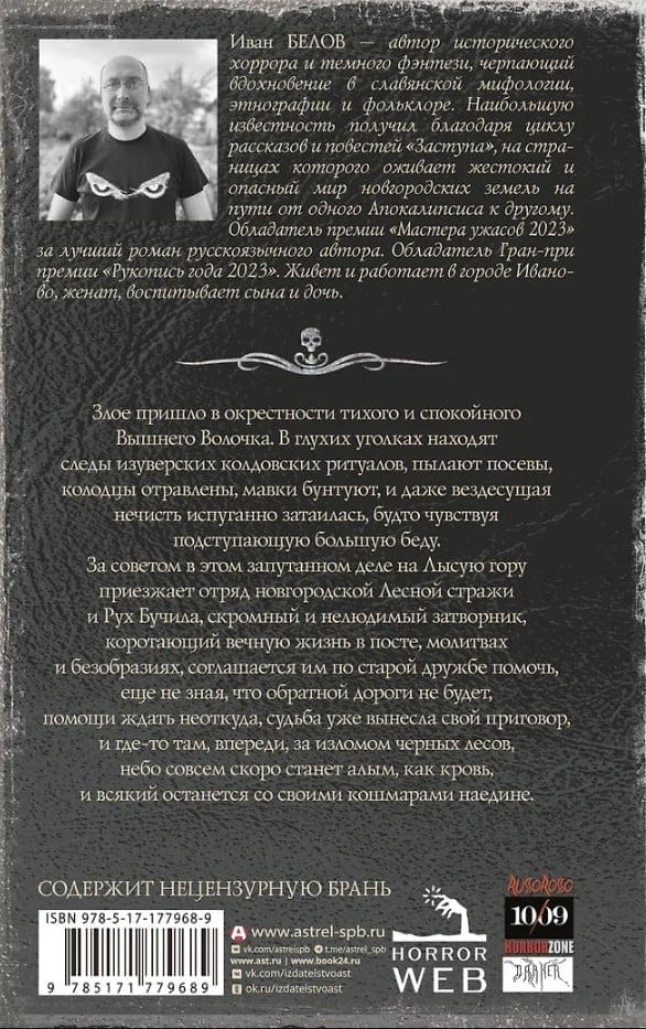 За советом в этом запутанном деле на Лысую гору приезжает отряд новгородской Лесной стражи, и Рух Бучила, скромный и нелюдимый затворник, коротающий вечную жизнь в посте, молитвах и безобразиях, соглашается им по старой дружбе помочь, еще не зная, что обратной дороги не будет, помощи ждать неоткуда, судьба уже вынесла свой приговор и где-то там, впереди, за изломом черных лесов, небо совсем скоро станет алым, как кровь, и всякий останется со своими кошмарами наедине.