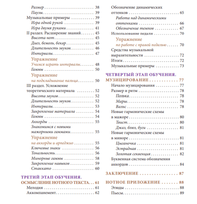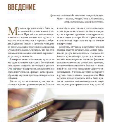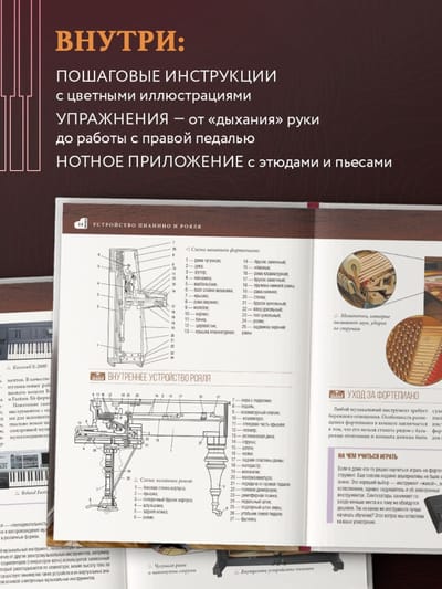 Самоучитель игры на фортепиано — прекрасный подарок для начинающего пианиста. Читатель найдет для себя все аспекты, касающиеся фортепиано: от истории и устройства этого музыкального инструмента до, собственно, музицирования. Доступное объяснение, разнообразные упражнения и максимум необходимой информации сделают процесс обучения увлекательным и помогут достичь наилучших результатов быстро и легко.