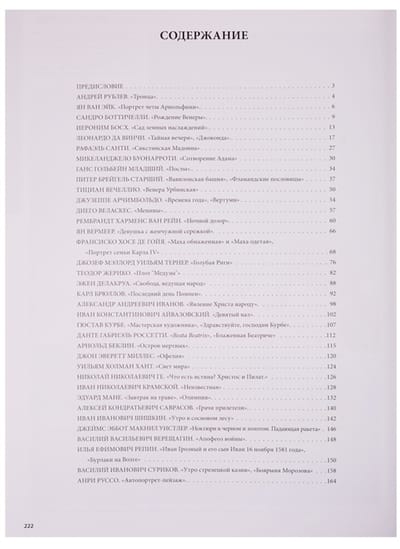 В энциклопедии представлены лучшие произведения в истории живописи, от раннего Возрождения (XIII век) до второй половины XX столетия. Этими шедеврами восхищаются миллионы людей, они являются неисчерпаемыми источниками вдохновения, основой культурного и творческого воспитания любого человека. Некоторые из них стали вехами в развитиии мирового искусства, навсегда изменившими общепринятые представления о прекрасном, другие же на протяжении долгих веков и по сей день считаются мерилом общественного вкуса. Многие из представленных в книге картин имеют увлекательную историю, наполнены глубоким символическим смыслом, изобилуют аллегориями и подтекстами, которые откроются вам на страницах этой книги. Издание адресовано всем, кто интересуется искусством; обилие иллюстраций и доступность изложения делает его актуальным для самой широкой аудитории.